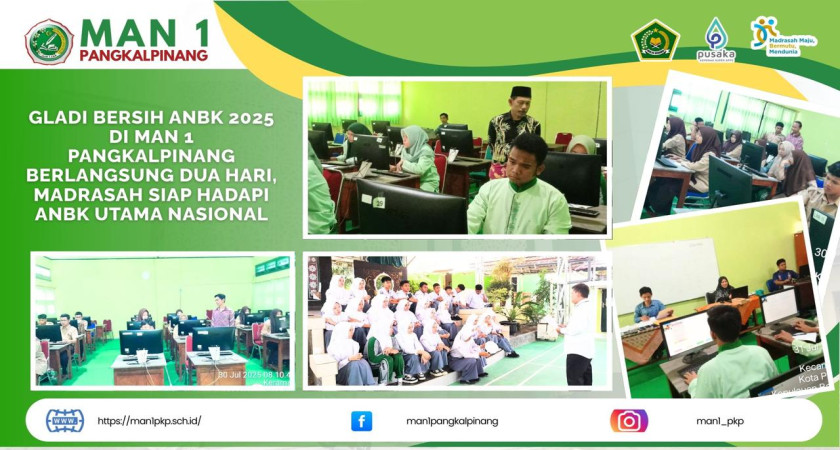Pangkalpinang, 1 Agustus 2025 — MAN 1 Pangkalpinang sukses melaksanakan Gladi Bersih Asesmen Nasional Berbasis Komputer (ANBK) Tahun 2025 selama dua hari, pada Rabu dan Kamis, 30–31 Juli 2025. Kegiatan ini dilangsungkan di Laboratorium Komputer MAN 1 Pangkalpinang sebagai bagian dari persiapan menghadapi pelaksanaan ANBK utama secara nasional.